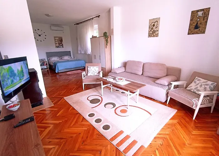 تقع Apartman Citrus تريبينيي المكونة من 1 غرفة نوم على بعد 19 دقيقة سيرا على الأقدام من Andelkina kapija، وتضمّ موقف السيارات الخاص المجاني لأولئك الذين يسافرون بالسيارة. الشقة تقع على مسافة 1.8 كم فقط من Cathedral Temple of Holy Transfiguration of Our Lord.